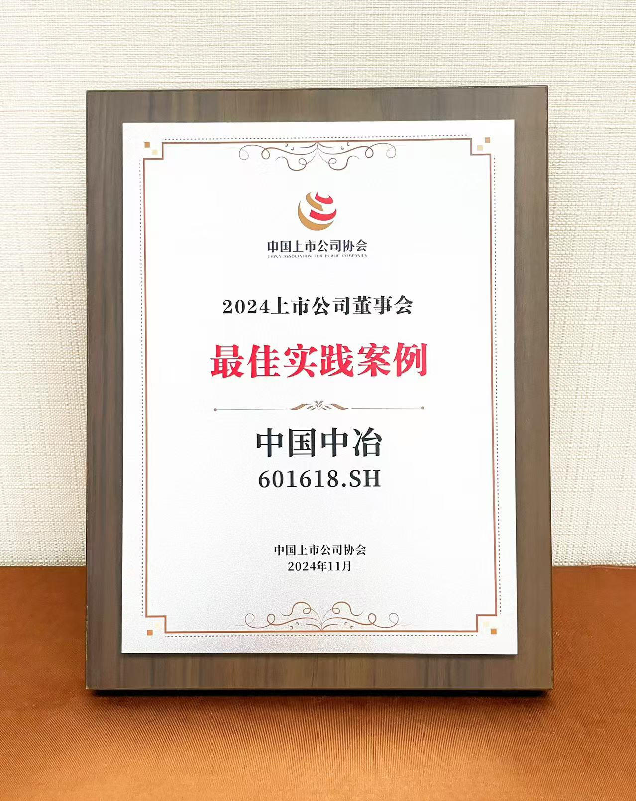 On November 22, the China Association for Public Companies (hereinafter referred to as CAPCO) held the release ceremony for the 2024 Best Practice of the Board of Directors of Listed Companies. China MCC stood out from more than 5,000 listed companies, winning the "Best Practice of the Board of Directors", the highest prize. Since the CAPCO first launched the Creation Activity on Best Practice for the Boards of Directors in 2023, China MCC has won this honor for the second consecutive year.