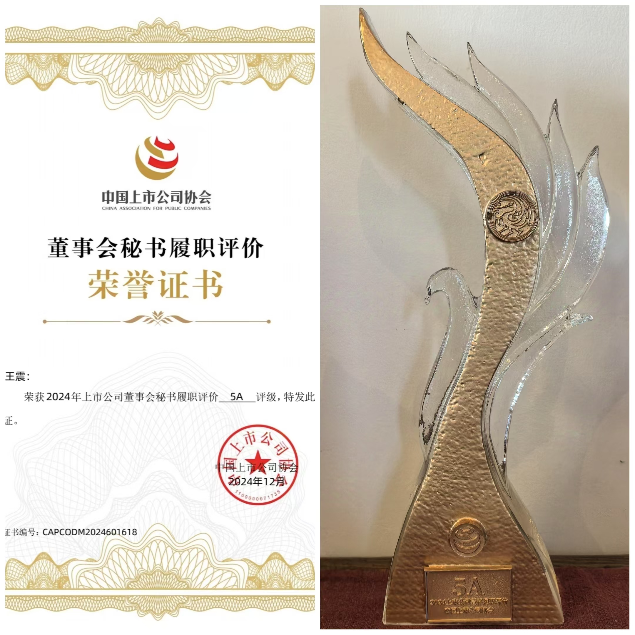 近日,中國上市公司協(xié)會(huì)發(fā)布“2024上市公司董事會(huì)秘書履職評價(jià)”結(jié)果,中國中冶、中國建筑、中國神華等225家公司董事會(huì)秘書從1385家參評公司中脫穎而出,榮獲5A評級,這是公司第二次獲此殊榮。